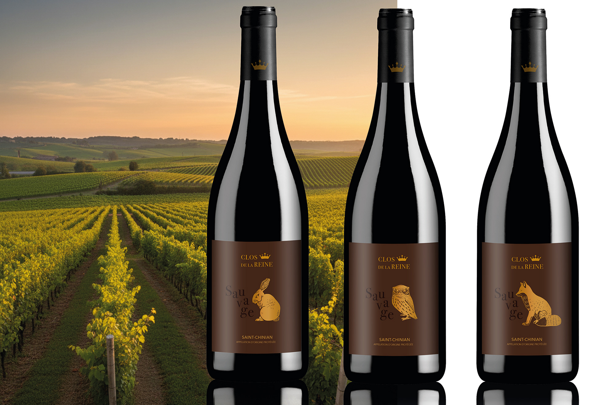 Création d'habillage graphique pour une gamme d’étiquettes de vin qui rend hommage à la nature, déclinaison visuelle des cartons et réalisation du logotype.