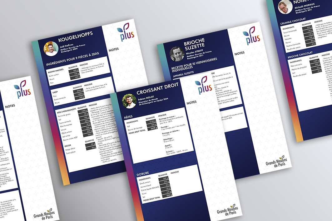 Conception et exécution éditoriale de fiches recettes pédagogiques, développées en collaboration avec des Meilleurs Ouvriers de France, à destination des boulangers dans le cadre d’ateliers pratiques.