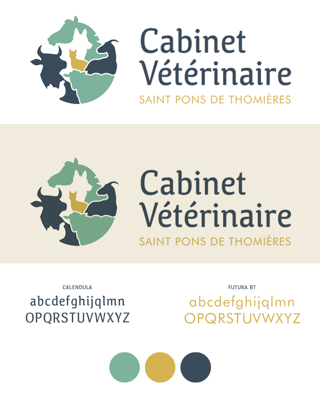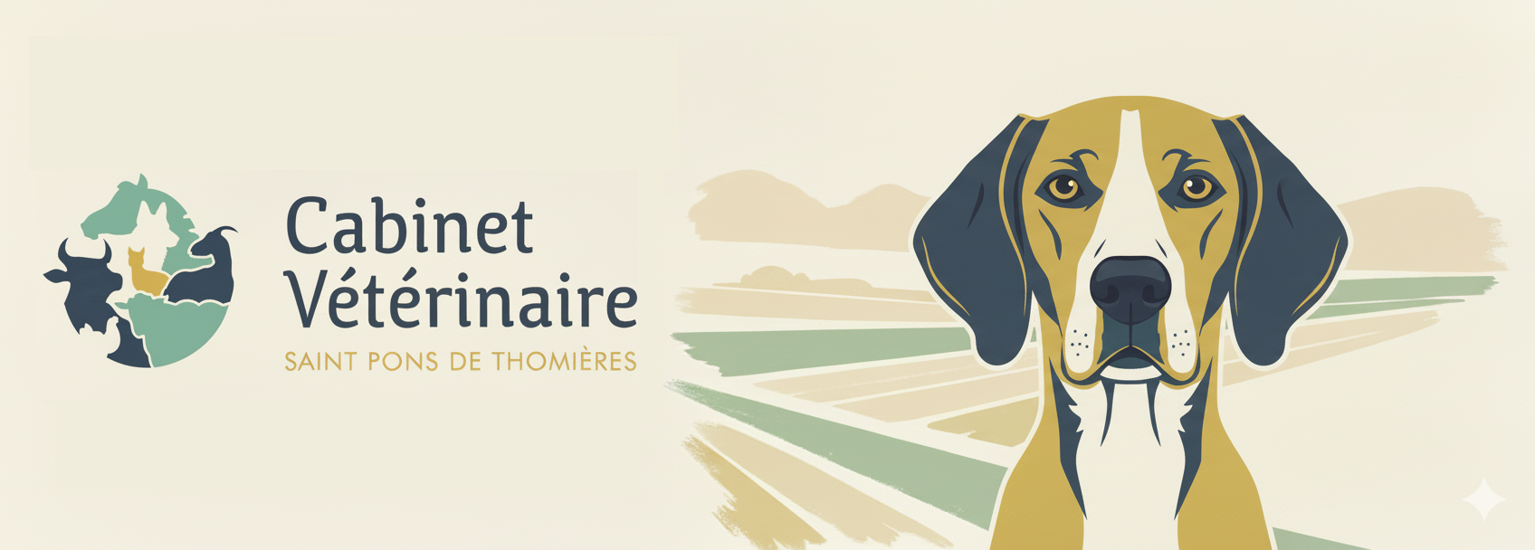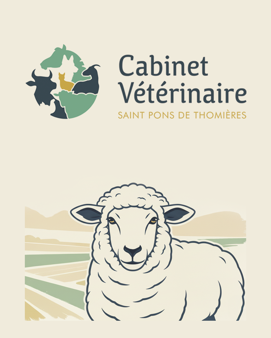 Conception d’un logo pour un cabinet vétérinaire, nouvellement ouvert par une jeune vétérinaire. Le logo devait répondre à la contrainte de représenter les sept animaux figurant dans le visuel, couvrant à la fois les animaux de ferme et domestiques.